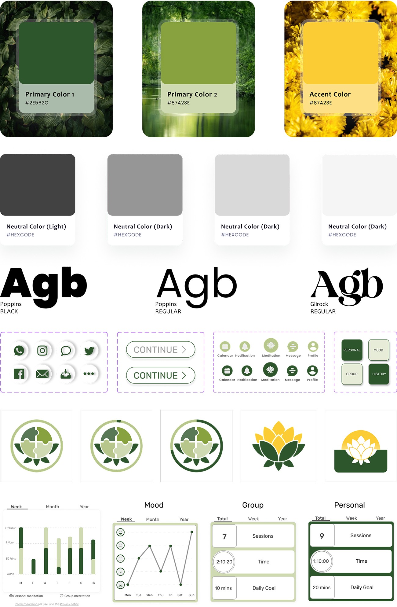 Iconography and component styling unified meditation, tracking, and community features into one consistent experience.