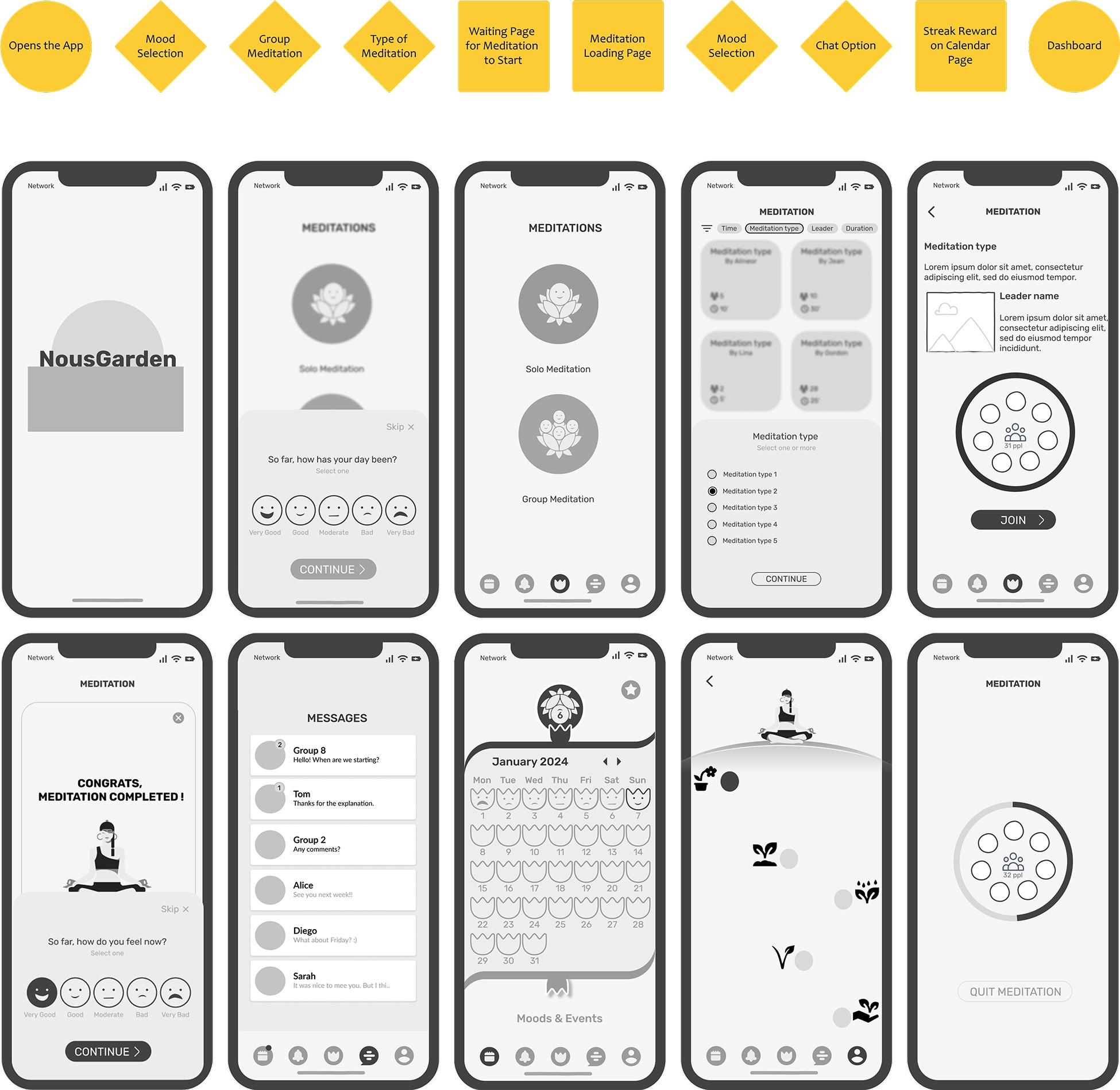 NousGarden was a Wellness assignment designed for a client named Daily Health Conference. During 2 weeks, my focus was to design a mobile application that allows users to meditate in groups, promising accountability and consistency to improve wellness.
